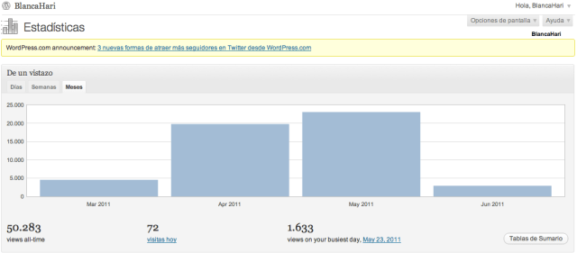 En este registro pueden ver el total de visitas que ha tenido el BlancaHari hasta ahora. Ayer superamos la barrera de los 50.000, y seguimos sumando, claro 😀 .