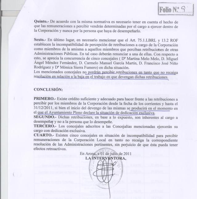 –> Informe de la interventora municipal sobre los sueldos políticos del Ayuntamiento de Arona: