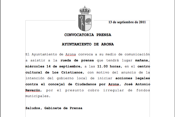 La denuncia alude a los pagos realizados por el PSOE de Arona a Reverón, el de la mochila, durante parte de la etapa ¡¡¡2003-2007!!!, y está probado que todos los gobernantes de CC de Arona, empezando por el alcalde, tienen conocimiento de los hechos desde el año 2007 (a través de las citadas escuchas). ¿Y denuncian ahora? jeje, ¿y poniendo en su convocatoria de Ciudadanos por Arona en vez de PSOE? jajajjajajajajaja