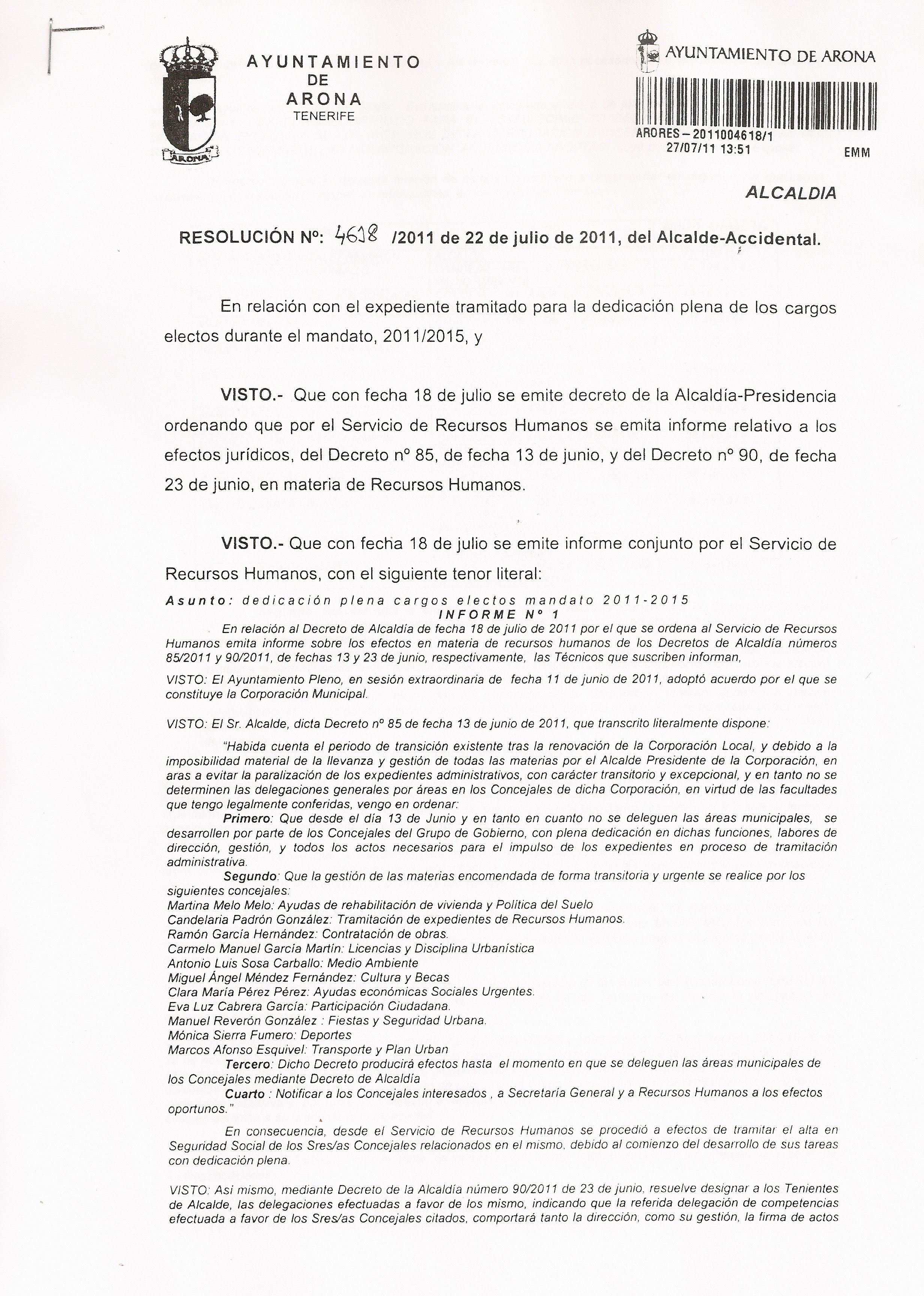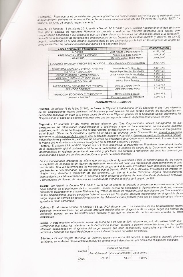Como les había prometido, les posteo los documentos con los que el gobierno bertista de Coalición Canaria y sus dos juristas preferidas se las apañaron para que los 13 concejales liberados de Arona cobraran 20 días de sueldo que, según Intervención de Fondos, no tenían derecho a cobrar.
