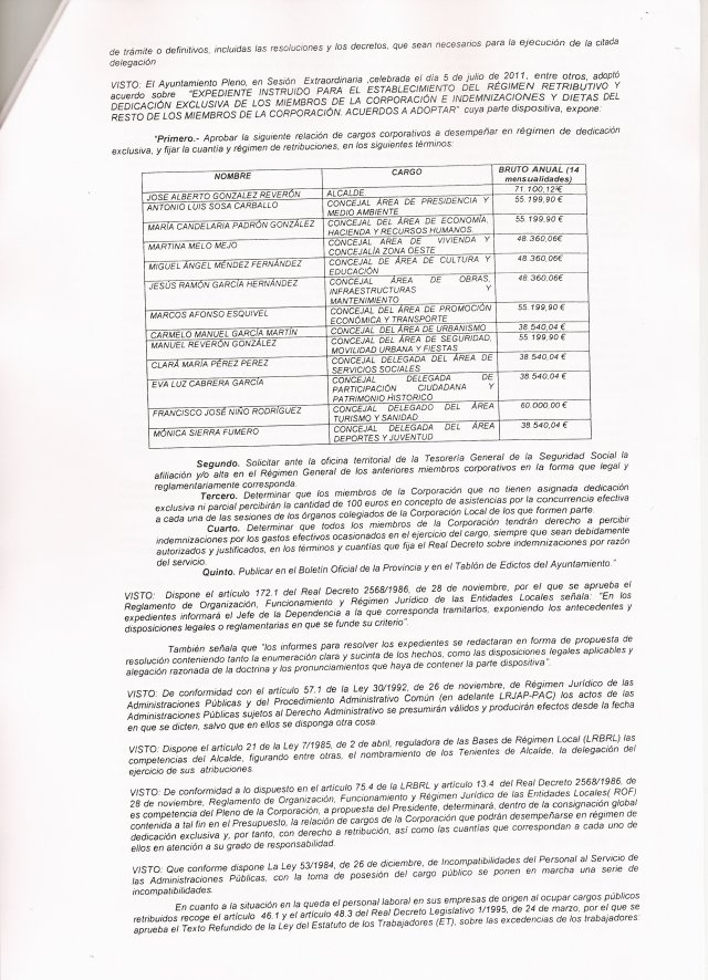 RECUERDEN: El lío con ese sueldo colado como indemnización viene de una Bertada: el alcalde, Berto González Reverón, no convocó cuando debía el primer pleno del mandato, ése en el que se nombran los cargos políticos con dedicación exclusiva. Priorizó otros asuntos ¿de interés? como el de celebrar ‘jornadas espirituales’ en un hotel con sus concejales. Y cuando le vino en gana convocar ese pleno (tres semanas después de la toma de posesión), se encontró con que la había pifiado, puesto que según Intervención de Fondos los concejales tenían derecho a cobrar sueldo solo desde su nombramiento oficial en pleno.