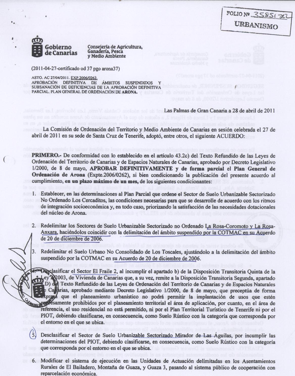 —>«Por fin se ha publicado el Plan General de Arona en boletín oficial!(Posteado 25 julio 2011)