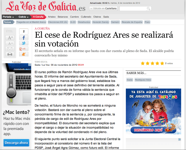 (Pinchar sobre la imagen para leer el artículo completo en El Ideal Gallego)-> Como en la anterior imagen, ya no hay link por culpa del PP de Rajoy.