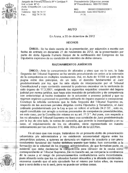 Providencia juzgado número 4 Arona, Caso Arona 2 al Tribunal Supremo Publicado 27/12/2012 en 434 × 586 en El instructor del Caso Arona 2 decide inhibirse en favor del Tribunal Supremo Siguiente → . Publica un comentario o deja una referencia: URL de la referencia.