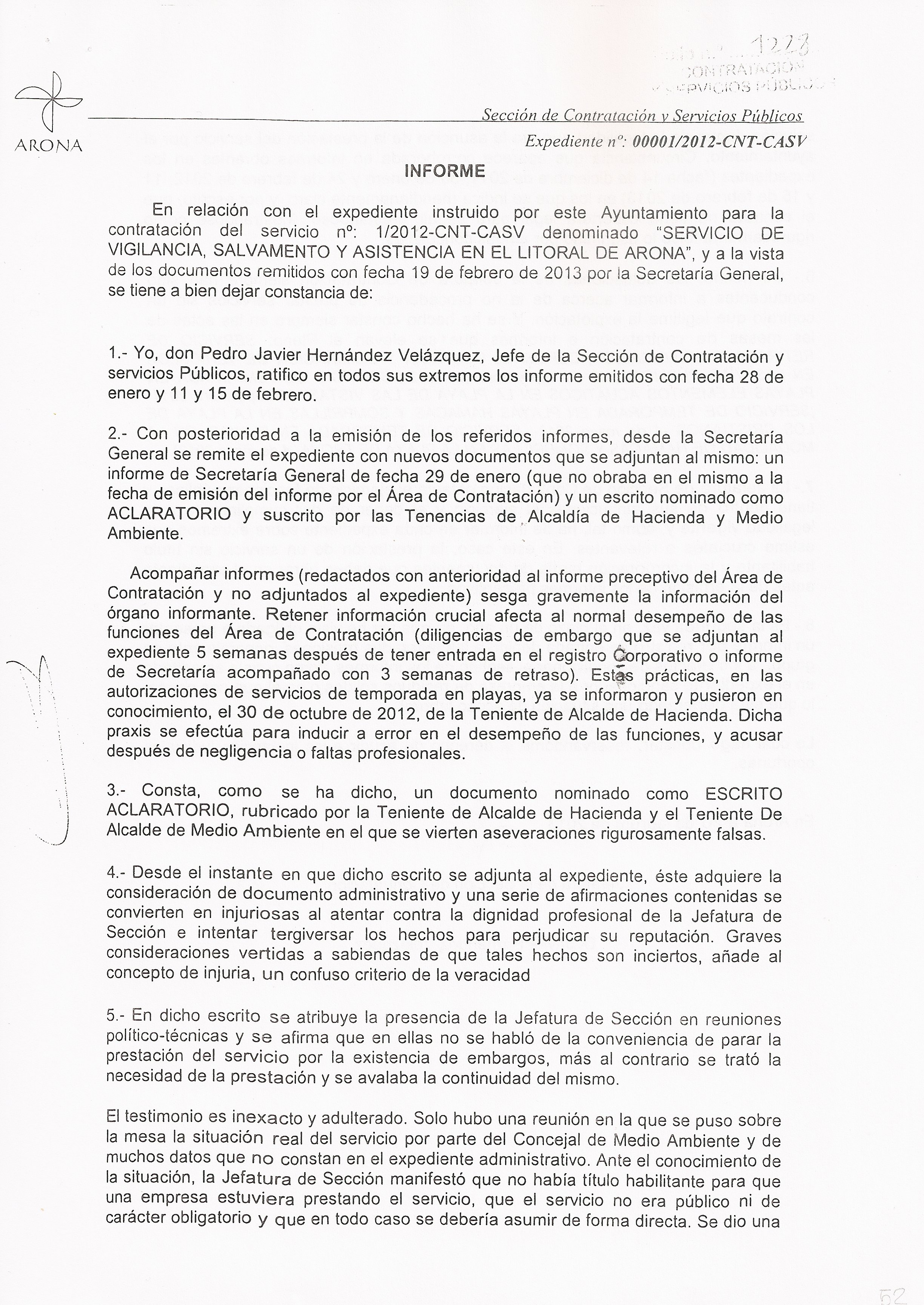 Como lo prometido es deuda, aquí tienen el expediente consistorial del Servicio de Vigilancia, Salvamento y Asistencia en el Litoral de Arona (Socorrismo). El de la etapa 2012-2013, que es el que nos ocupa ahora (aunque el de años anteriores es también de escándalo).