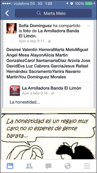 Entre las reacciones por descifrar, la de la jefa de prensa bertista (hasta ahora al menos) y sosista, Sofía Domínguez, etiquetando a Marta Melo y a varios de los que habían apoyado su avergonzada queja contra CC y Berto (¡¡¿Sofía habla de honestidad?!!, jajajajajajajajajajaja).