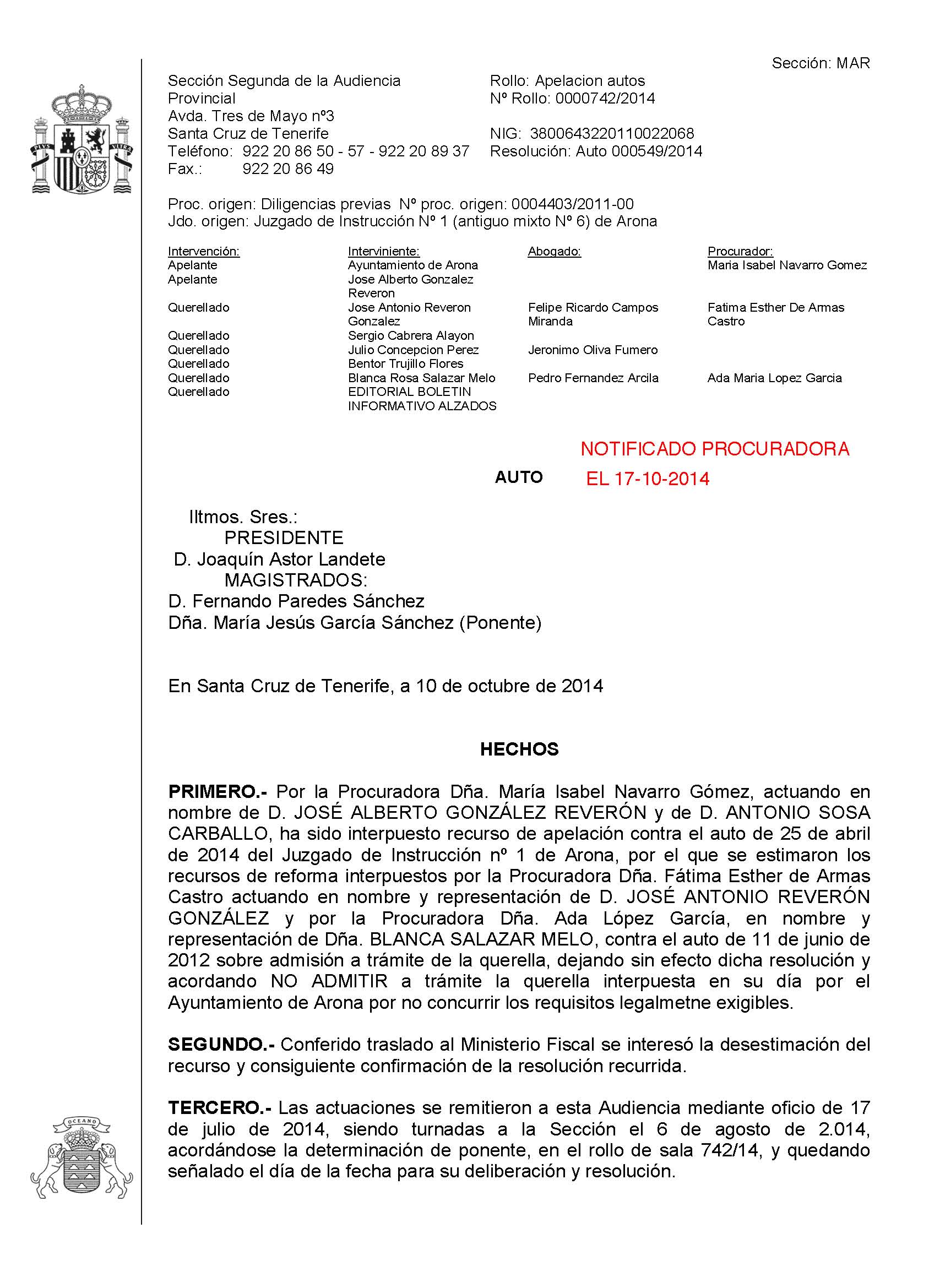 En el auto judicial, emitido el pasado 24 de noviembre, el juez cita a declarar en calidad de imputados por dos presuntos delitos de prevaricación a otras 14 personas; algunas de ellas todavía con responsabilidades públicas en el Ayuntamiento, como Miguel Ángel Méndez, designado candidato de Coalición Canaria (CC) a las elecciones municipales del próximo año, o el primer teniente de alcalde actual, Antonio Sosa.