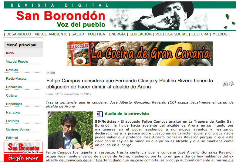 Por cierto, también sigue dando que hablar en la Web estatal el escándalo de la destrucción masiva de alimentos en el Ayuntamiento de Arona y el de la propuesta de matar a tiros a perros asilvestrados en la Montaña de Guaza (esto último ya no se va a hacer, pero la intención ha dejado una huella chunga…