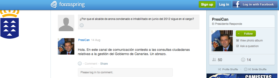 Esto no lo tengo requeteconfirmado, pero me llega por distintos lados. Se dice que el ex alcalde fue visto anteayer en Fiscalía, histérico y descalabrado de nervios acompañado por otras dos personas. Podría tratarse de las denuncias que han puesto Pérez Ventura y Campos por su permanencia ilegal en la Alcaldía durante cinco meses y por todas las tretas que hicieron él y los suyos para intentar eludir la ley que le obligaba a dimitir. Pero a saber. Entre que no sé con certeza que efectivamente haya comparecido en Fiscalía esta semana, y entre tooooodas las denuncias que tiene en su contra…
