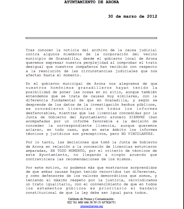 ¿Y qué hacen los responsables del Ayuntamiento de Arona? Mutis por el foro. Como si la cosa no fuera con ell@s. Como si no se hubieran encargado de exprimirle la rentabilidad electoral a la oferta de alquileres especiales para familias necesitadas como las 70 que han sido tongadas. Ya les vale a todos (Gobierno canario, Ayuntamiento de Arona, Cabildo de Tenerife,…). Porque el engaño-fraude-embolado en el que han participado afecta a las familias del municipio con menos recursos económicos, ¿o va a resultar que dan subvenciones de alquiler a familias que no lo necesitan?
